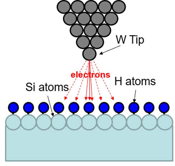 距H钝化硅表面约1nm的W扫描隧穿显微镜(STM)尖端