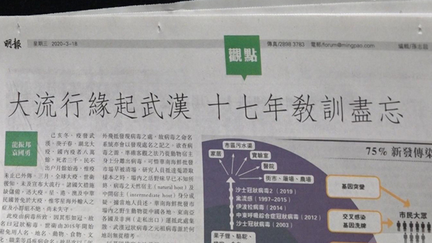 袁國勇、龍振邦的文章《大流行緣起武漢 十七年教訓盡忘》原本刊登於2020年3月18日的《明報》