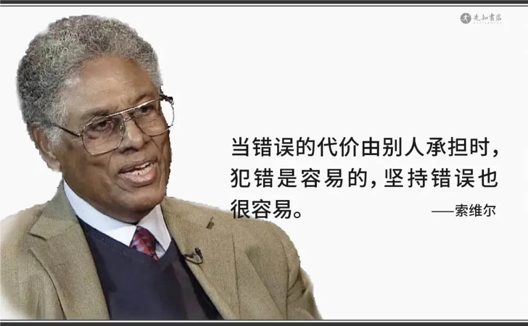 在索维尔看来,任何社会都混杂着善与恶,人类历史上从未缔造过完美的社会,未来也不可能有真正完美的、理想的社会。好的知识分子,不会承诺最好的东西,而是小心的去选择最不坏的那个。就像丘吉尔所言“与其他制度相比,民主只不过是最不坏的。”