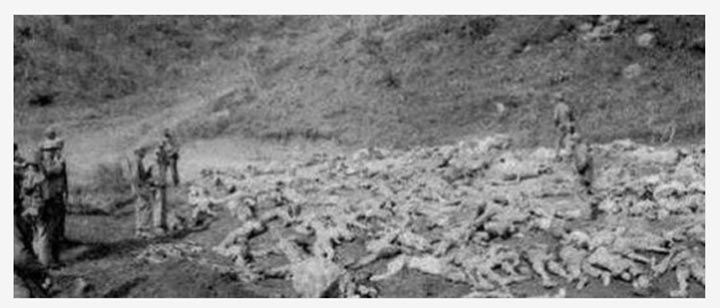 战场上,到处散落着中共士兵的躯体及残肢断臂,白雪覆盖的邸平里雪原已被中共士兵的鲜血浸泡成黑红色。